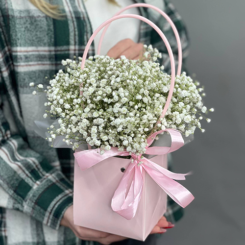 Композиция в сумочке из гипсофил